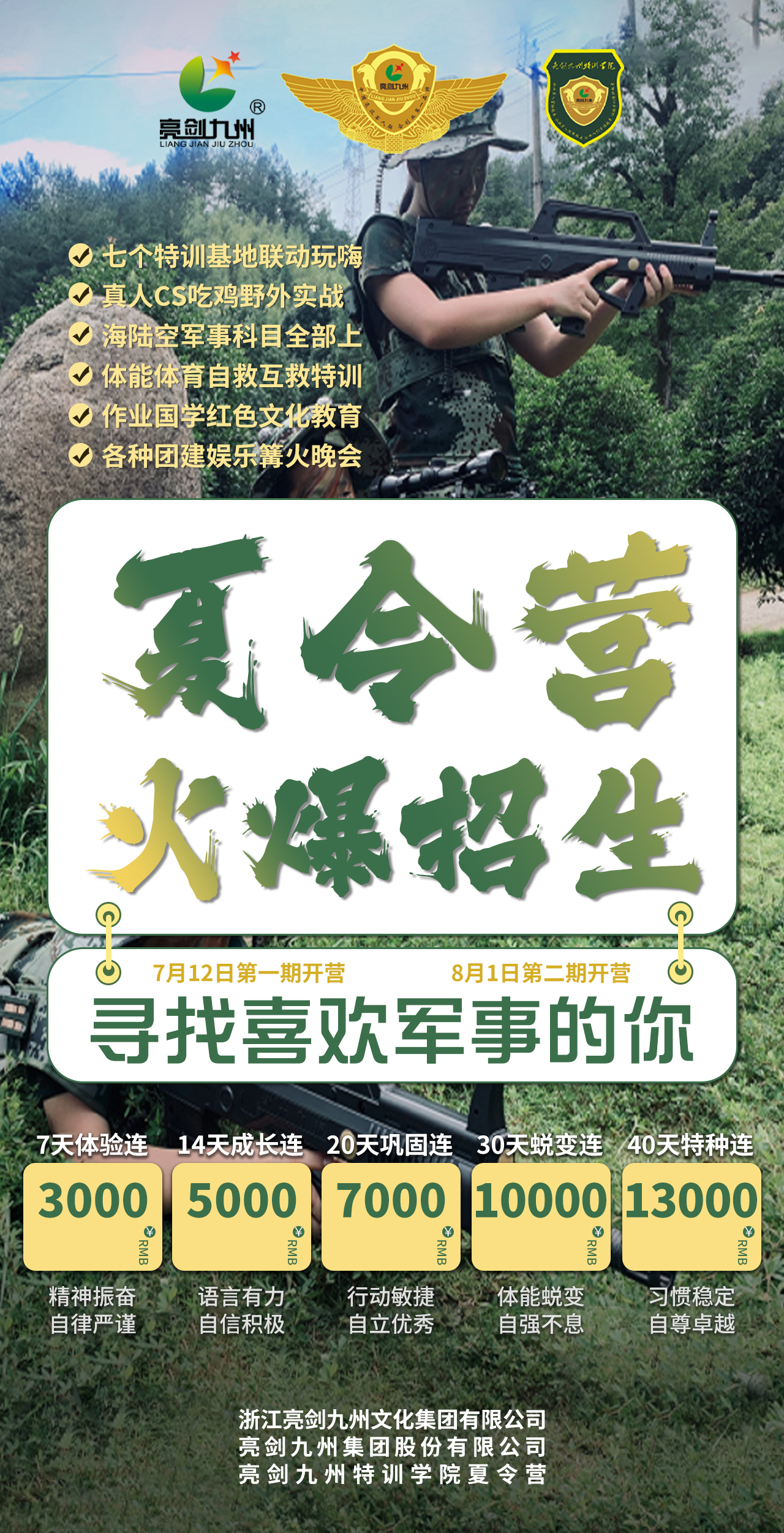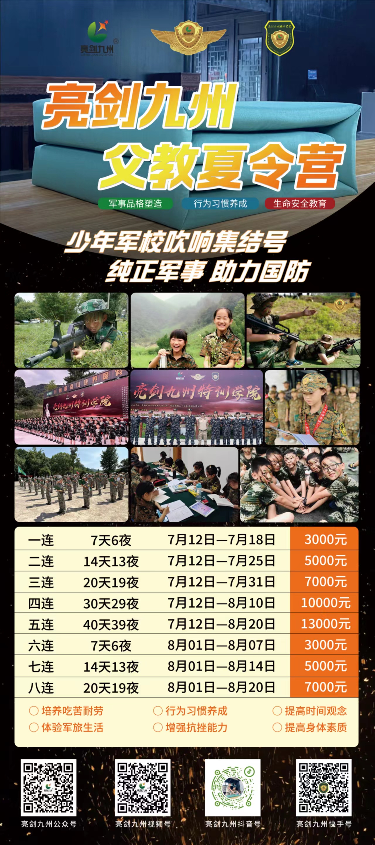 ![]() 这个暑假,你还在给孩子填满补习表,或是放任他沉迷电子世界吗?不如送孩子参加亮剑九州夏令营,让他在全真、高压、陌生的沉浸式环境中,通过团队拓展与军旅历练,尝遍成长百味、激发内在潜能、挑战自我极限,学会自律、自立、自信、自强、自尊,为人生装上精准导航,开启一场全新的蜕变之旅。 院长汪勇成以父亲之心,融合军事管理学、教育学、国学、心理学等多学科知识,研发专属特训体系,始终将营员当作自家孩子悉心培育,做到“哪里不足补哪里、个别问题个别训”——普通问题由连长、指导员等专人负责,疑难问题由营长亲自执教。12年来,已成功帮助无数孩子改善肥胖、沉迷游戏、自律不足、自卑内向、抑郁焦虑等问题,助力孩子健康科学蜕变。 在这里,没有“小公主”“小皇帝”的娇纵任性,7-40天的集中历练,能磨炼孩子顽强意志、强大内心,让他蜕变为优秀小勇士。孩子将改掉拖拉懒散的陋习,强化时间观念,养成良好作息;学会感恩父母、体谅他人,摒弃自我中心;提升责任担当、问题解决能力,锤炼阳刚之气与抗压受挫力。 紧跟教育部政策导向,夏令营全面升级:重点提升营员体育体能,同步监管指导暑假作业;强化爱国感恩、国学红色文化教育,深化五自素养;培养团结友爱精神,为肥胖营员提供科学减重指导,帮助孩子释放身心压力、缓解焦虑。更增设热气球、直升机体验、水上乐园、卡丁车、游泳、野外求生、CS战斗联盟等特色项目,丰富成长体验。 未来的竞争是全方位的,家长终将放手让孩子独自前行。夏令营让孩子早早融入集体,学会分享交流、直面成败、独立应对困难,在实践中积累成长力量。在这里,孩子能体验上山采野果、下山抓蚂蚱的野趣,玩转丢沙包、跳方格等传统游戏,漫步湖畔山水、奔跑无垠旷野,告别钢筋水泥的束缚,重拾自然纯真的童年快乐。 我们鼓励孩子保持好奇、大胆提问、勇于尝试创新,这些正是未来领袖与社会精英的必备品质。我们尊重孩子的独立个性,放大其优势特长,温柔触碰其不足,在集体荣誉的感召下,让每个孩子都能变得更优秀。 7-40天的系统训练,将帮助孩子建立学习动力、感知家庭温暖、树立社会责任感,为校园学习与未来发展筑牢基础。习惯决定未来,差距始于当下,从小指引孩子正确方向,才能助力他成长为未来领袖,不负时光、不负期许。 |